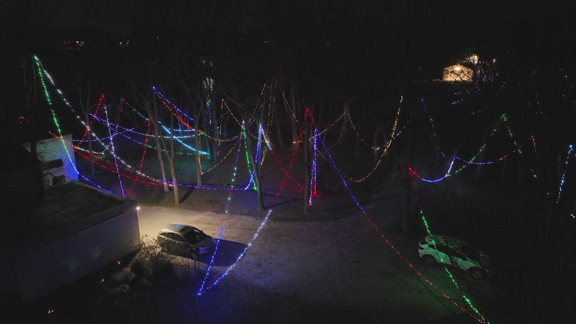 The process begins in September, as Barnett meticulously prepares for the upcoming holiday season. He uses a weighted arrow to shoot a fishing line over a tree limb. Once the fishing line is secured, Barnett attaches it to a string, allowing him to hoist the lights into place. “A bow and arrow comes in really handy,” he noted. This method not only showcases his creativity but also adds a unique twist to traditional holiday decorating.