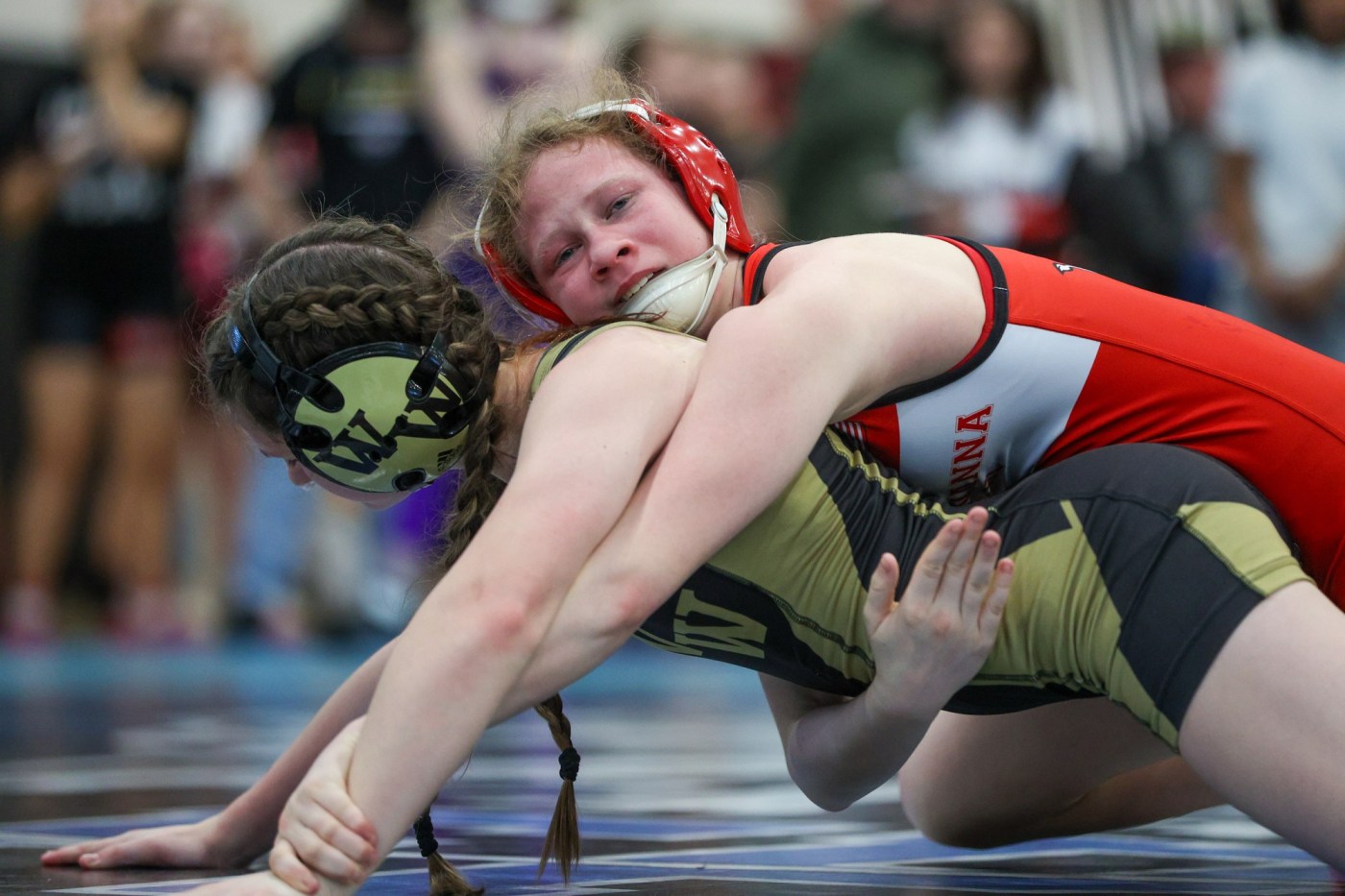 Schaffer and teammate Payton Laytos, who also made a strong showing by pinning her opponent in 1:31, both transitioned from the boys’ team to compete in this girls’ championship, highlighting their unique journey in a sport that doesn’t have a dedicated girls’ program at their school.
